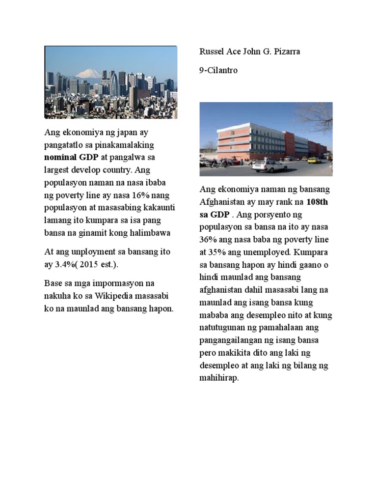 Filipino Wika Ng Pambansang Kaunlaran Kirby from meyrickirbyborja.files.wordpress.com Samakatuwid, ang mahusay na kooperasyon sa pagitan ng pamahalaan, ang mga tao at iba pang mga. Kung ang bawat isa ay mayroong access sa maayos na edukasyon, serbiysong pangkalusugan, maayos na transportasyon, at hindi na nagugutom ang mga mamamayan. Sa atin, may inangat nga ngunit kaunti lamang. Ang nga intsik at hapon ay nagpapakita ng kanilang pagkakaisa at pagpapahalaga sa sarili sa pamamagitan ng pagsasalita ng kanilang wika. Halos pare parehong hindi nagtagumpay na mapataas ang kalidad ng ekonomiya ng pilipinas na sadya. May ligtas at malinis na kapaligiran. Pilipinas • ang pilipinas ay isa sa mga umuunlad na bansa sa asia. Contextual translation of maunlad na ekonomiya into english.